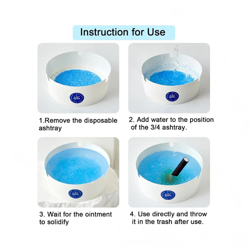 Perfect for offices, living rooms, and travel, these portable ashtrays effectively trap ash and neutralize smoke smells on the spot. Simply pour in a small amount of water, wait five seconds for the gel to form, and enjoy a cleaner, safer smoking experience. When finished, just toss the entire tray away—no scrubbing or residual soot required.