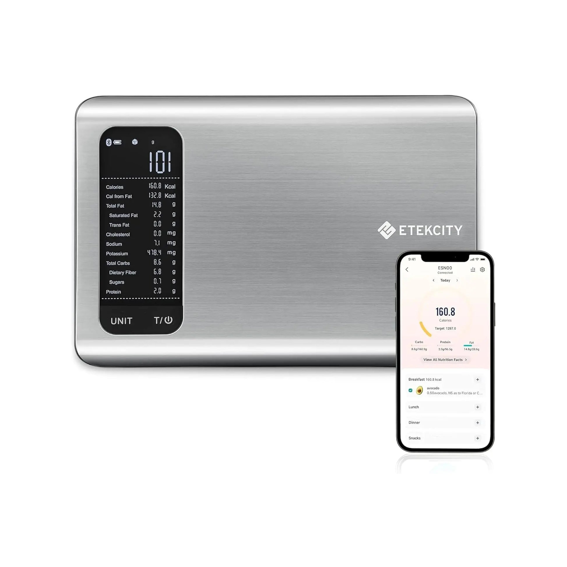 - Advanced Nutritional Tracking: Connects to the free Vesync App to track up to 19 nutrients simultaneously, including calories, fat, protein, and carbs (macros). Monitor trends and generate daily/weekly nutrition reports.