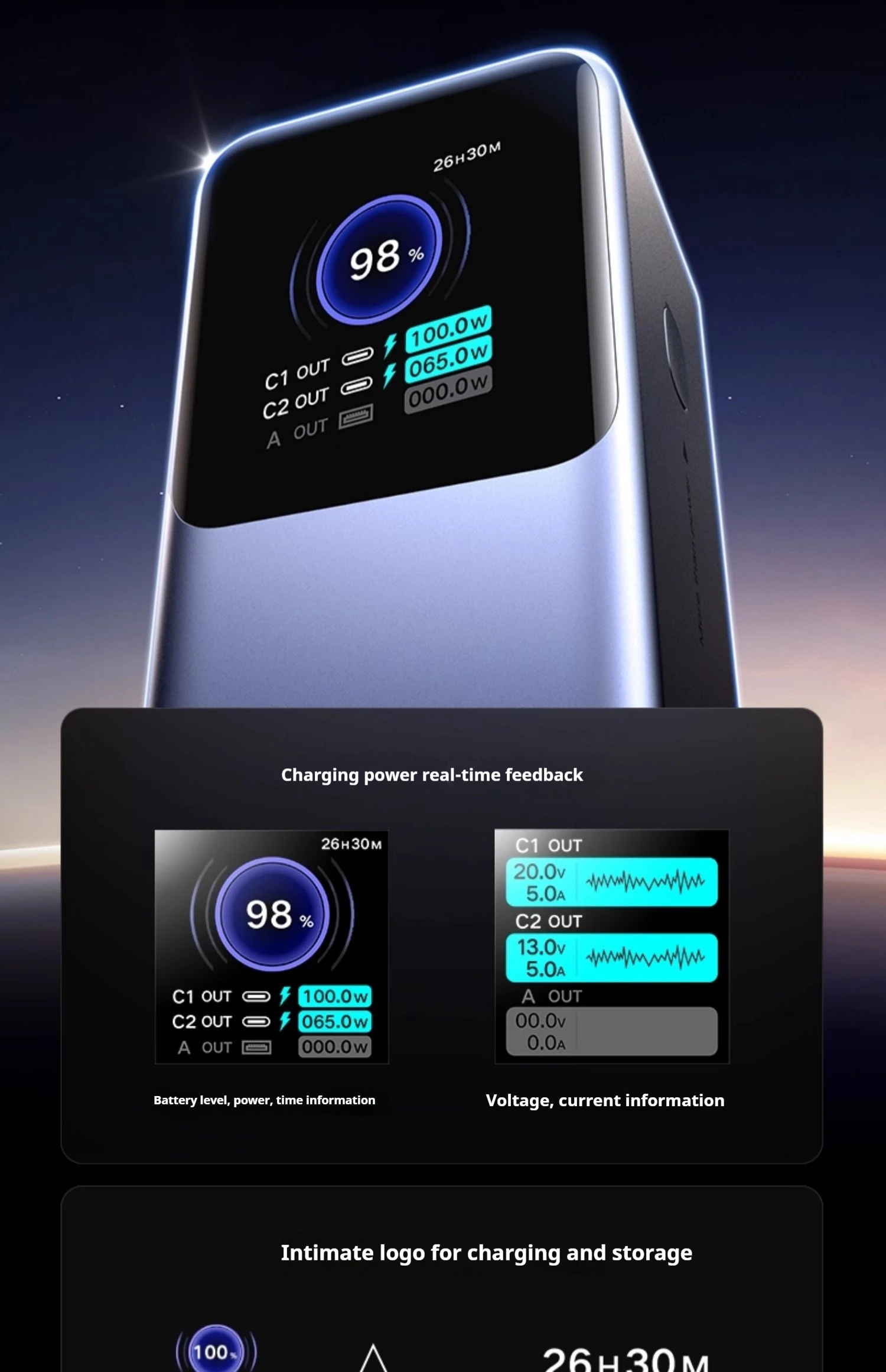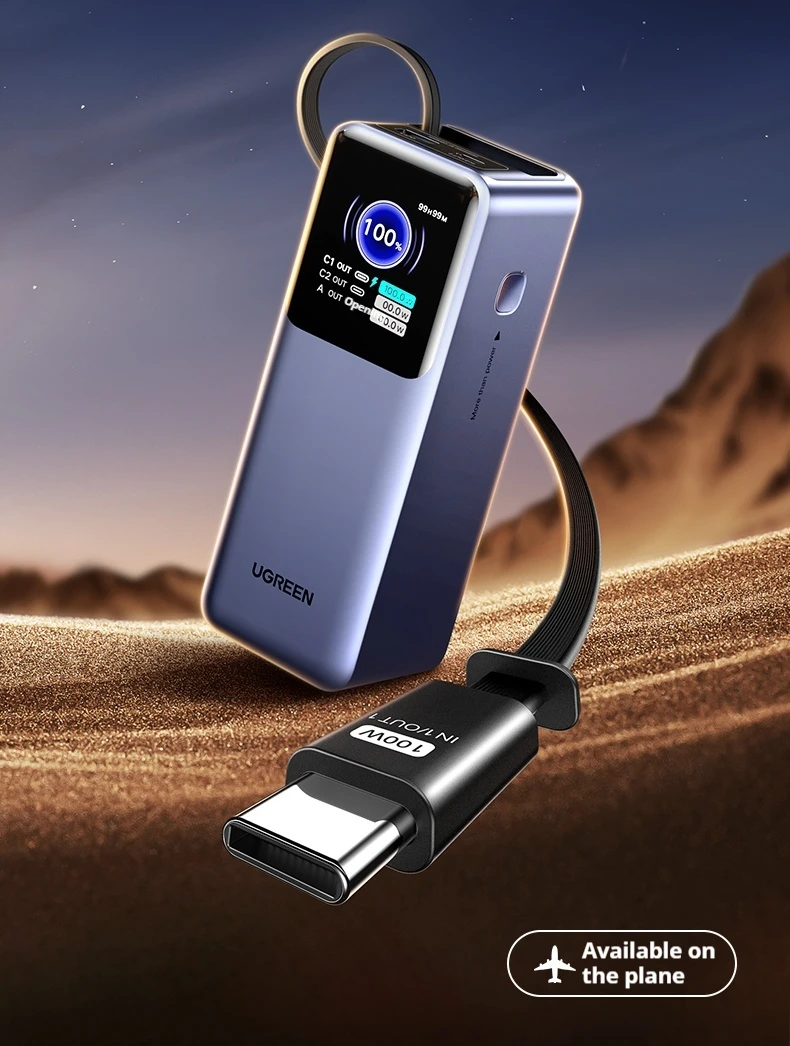 - Integrated 100W USB-C Cable: Features a convenient, built-in USB-C cable that supports up to 100W fast charging, eliminating the need to carry an extra cord.