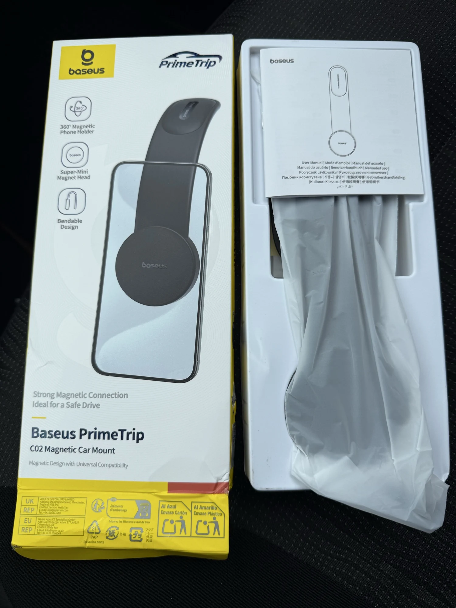 The BASEUS CO2 Foldable Magnetic Car Phone Holder provides flexible, minimalist mounting designed specifically for the Apple ecosystem. It features a precise, strong magnetic array (60mm diameter) for instant, secure attachment to iPhone 12/13/14/15 series phones, or any phone using the included magnetism ring. Its bendable soft aluminum body allows for customized viewing angles across the dashboard, center console, or behind the screen, and it securely adheres via a durable 3M with Velcro base.