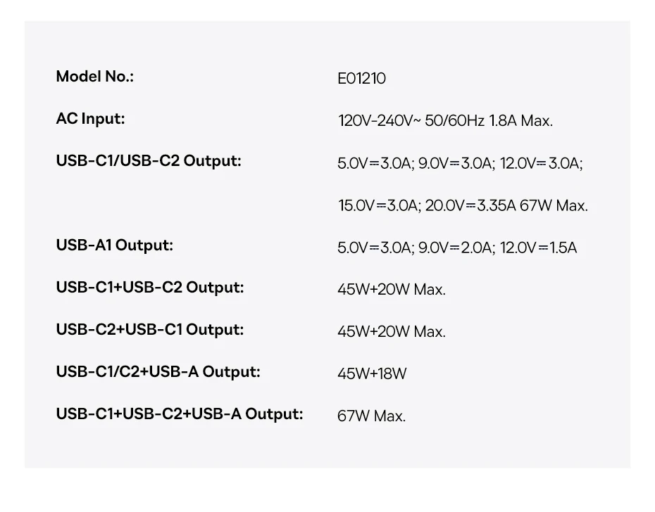 - Maximum 67W Power Delivery (PD): Delivers a full 67W from a single USB-C port, capable of fast charging a MacBook Pro/Air or any compatible laptop, tablet, or smartphone (e.g., iPhone 17 Pro Max).