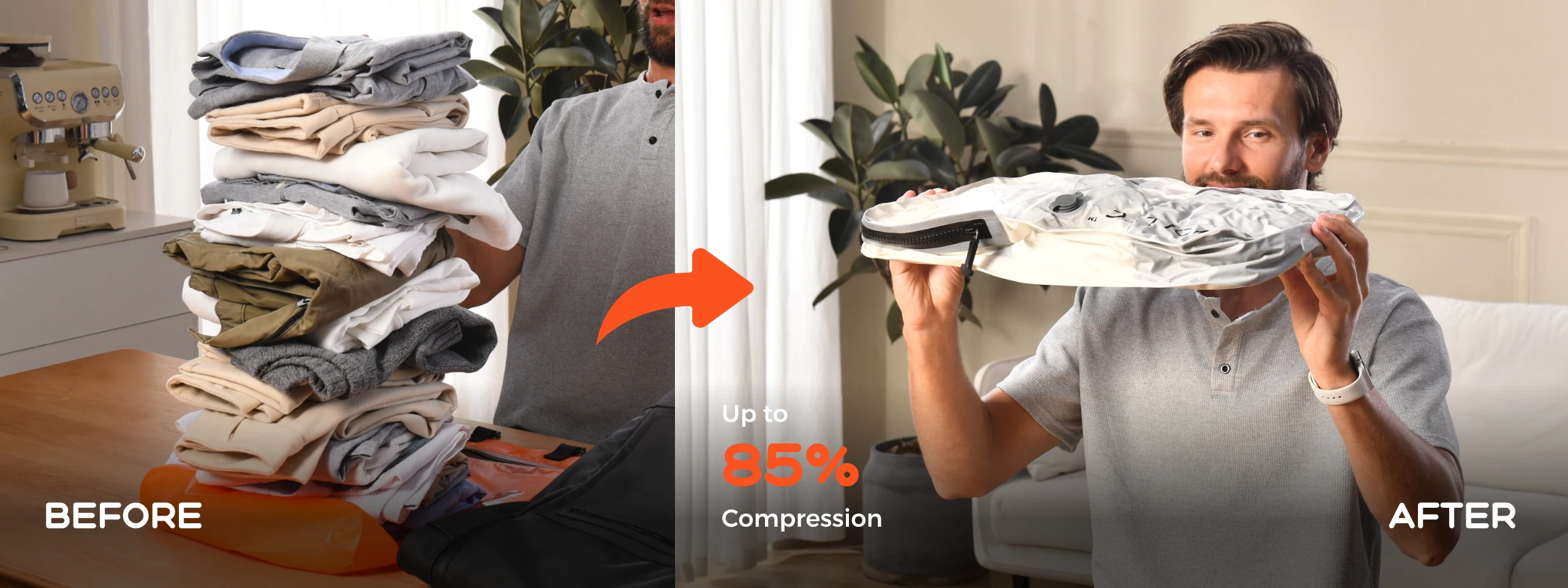 - 85% Max Compression: Innovative vacuum technology shrinks bulky clothing, jackets, and linens to a fraction of their size, effectively tripling your available luggage space.