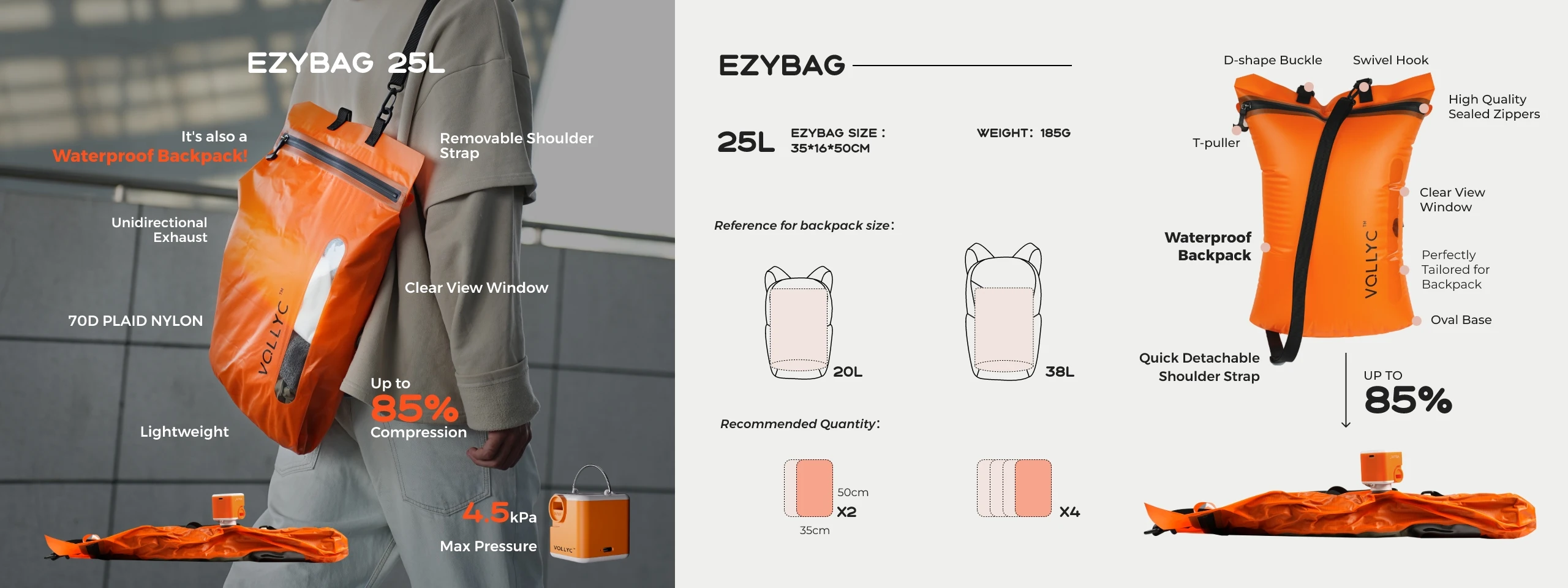FLEXTAIL x VOLLYC EZYPACK & EZYBAG 25L Vacuum Storage System