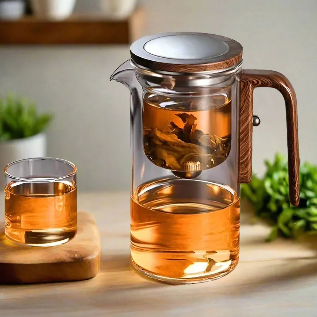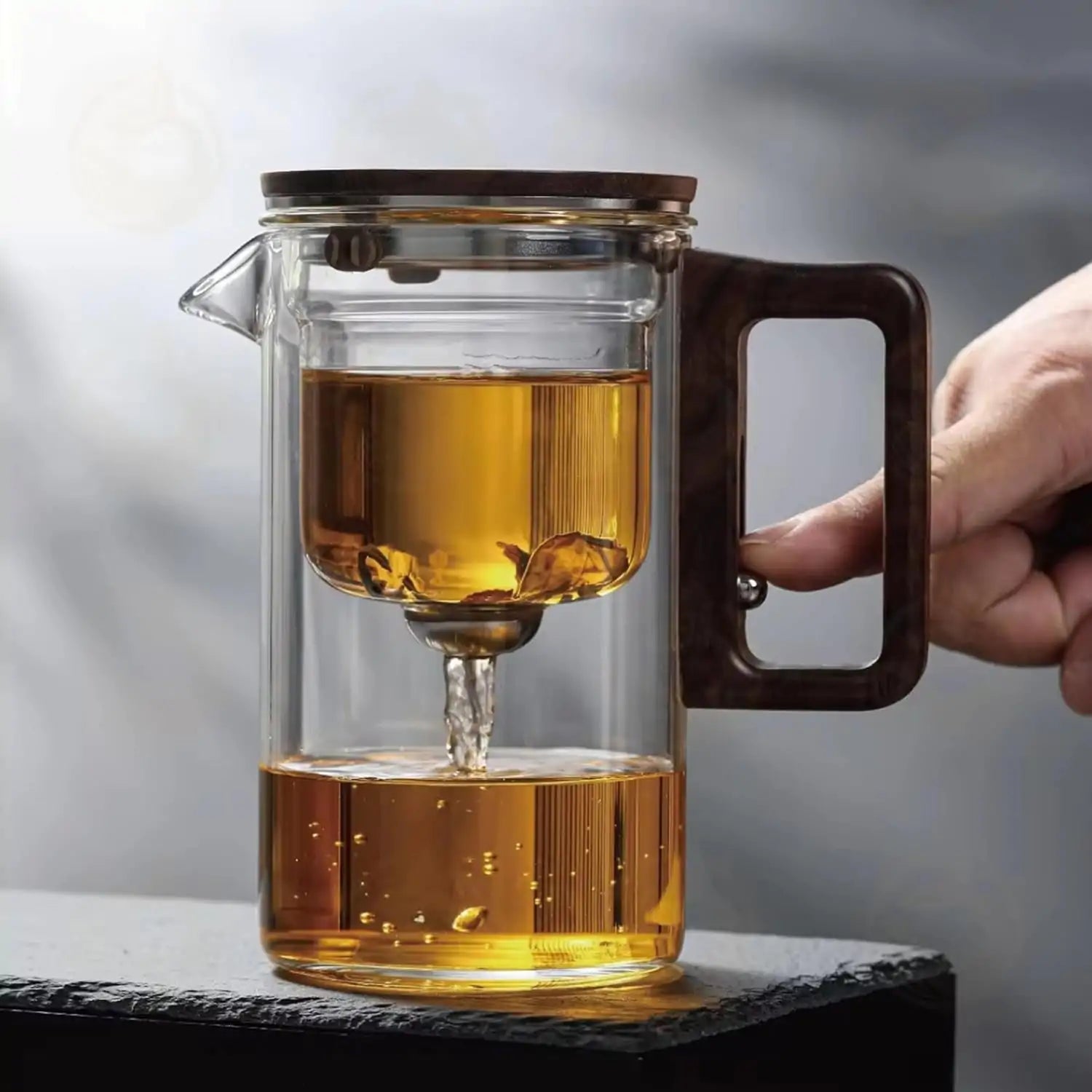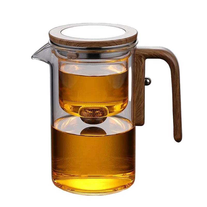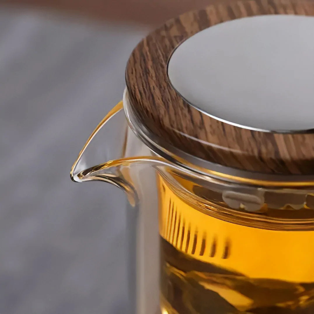 The Magnetic Filtration Glass Teapot combines heat-resistant borosilicate glass for a clear brewing view with a durable 304 stainless steel infuser for fine filtration. Its ergonomic wood-style handle offers anti-scald safety and elegance, blending Japanese artistry with everyday durability.