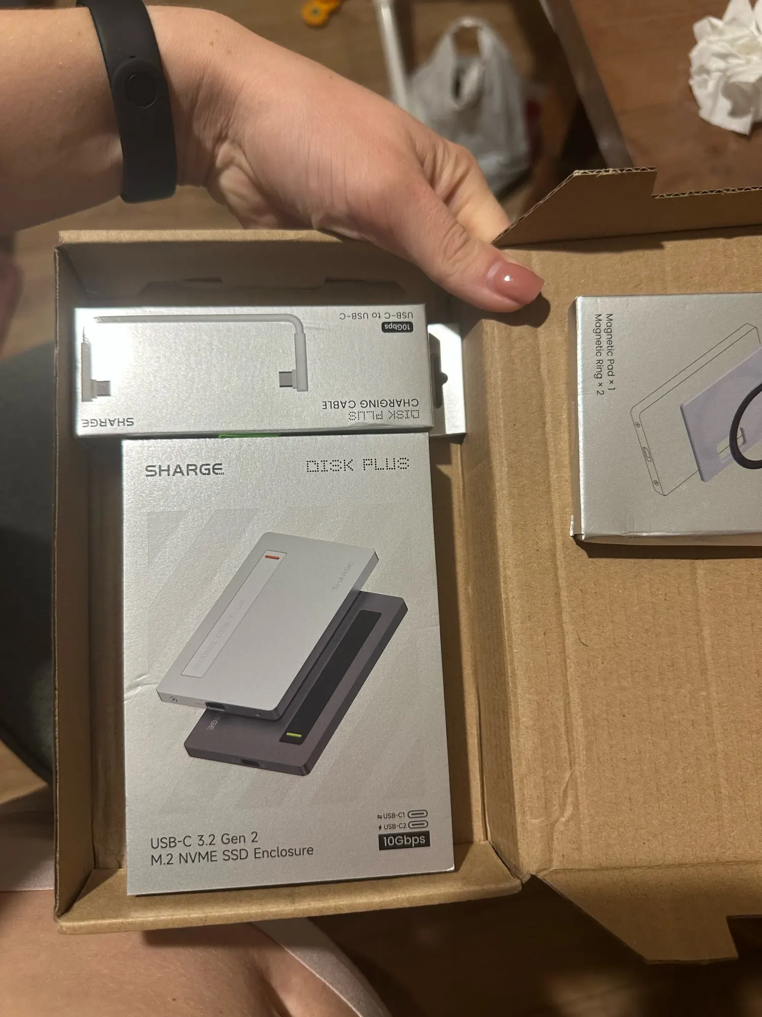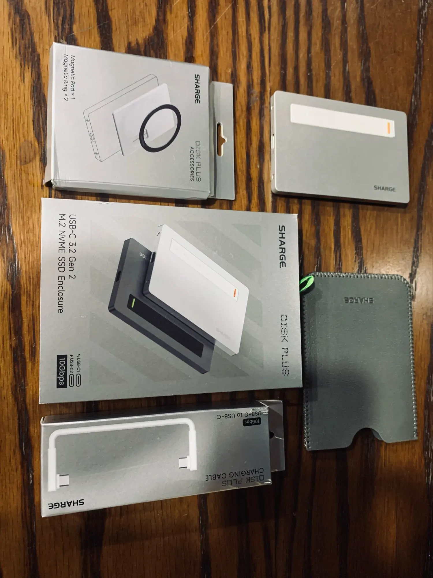 Great device, really small , really light, size of credit card. I bought western digital sn 580 1 terabyte ssd m.2 card, suits inside and closure really good. The ssd is pci 4.0, but enclosure is pci 3.0 compatible. So it's cheaper to buy pci 3.0 compatible ssd. Bought it especially to use with android phone and apple macbook air because of pass through power feature which works really great. My only complaint is hit what produced by power through feature when you use it. Magnetic pad is really good, i glue it to the disc as you're see in the pictures and use it both for my phone and my computer. Have to format that ssd before using.