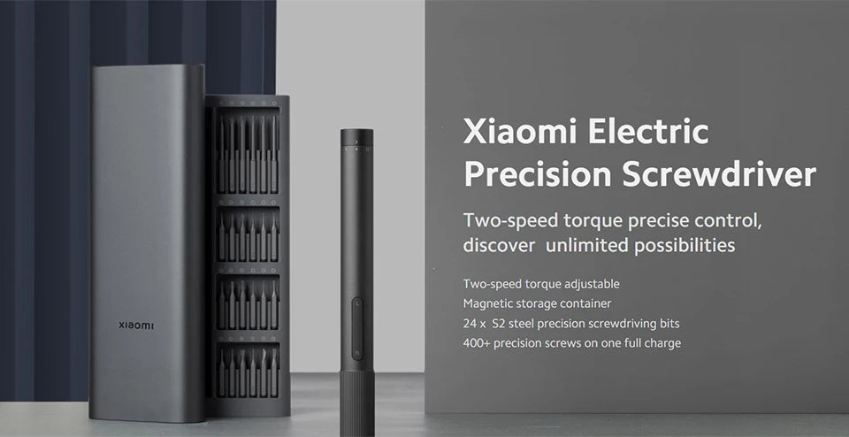 The Xiaomi Mijia Electric Precision Screwdriver Set is a compact and powerful tool designed for effortless precision repairs. This electric screwdriver set features 24 magnetic bits, adaptable torque control, and a long-lasting battery, making it a versatile tool for fixing smart home devices, PCs, phones, and more. Its intuitive operation and durable aluminum alloy design make it both a joy to use and a lasting investment.